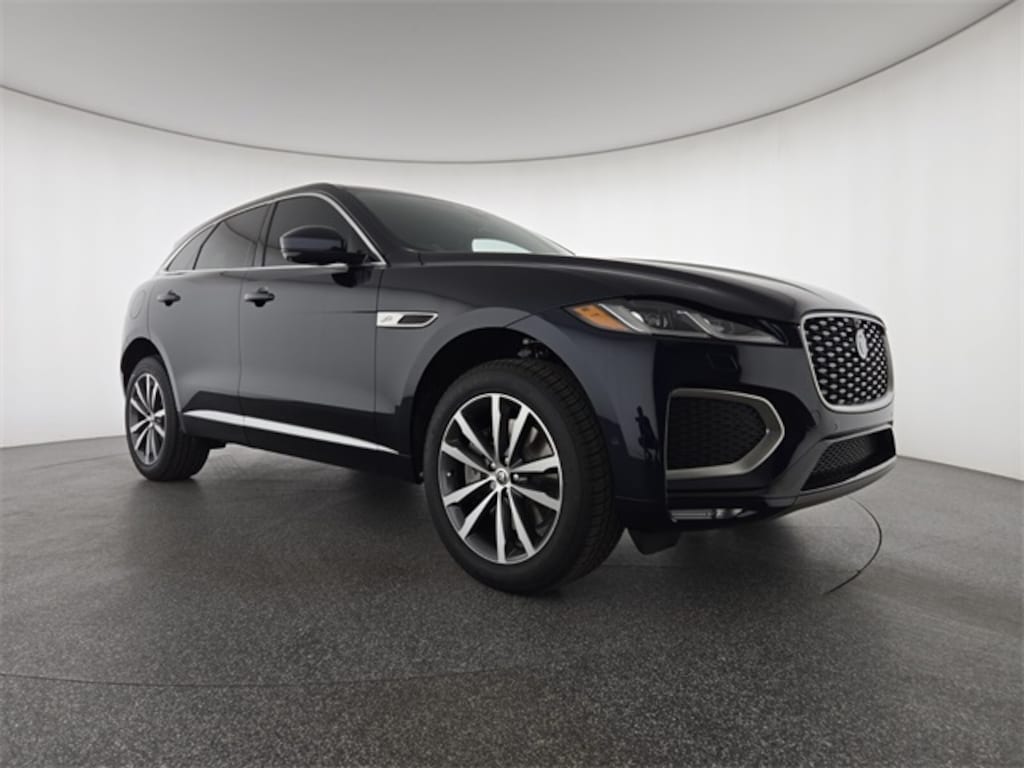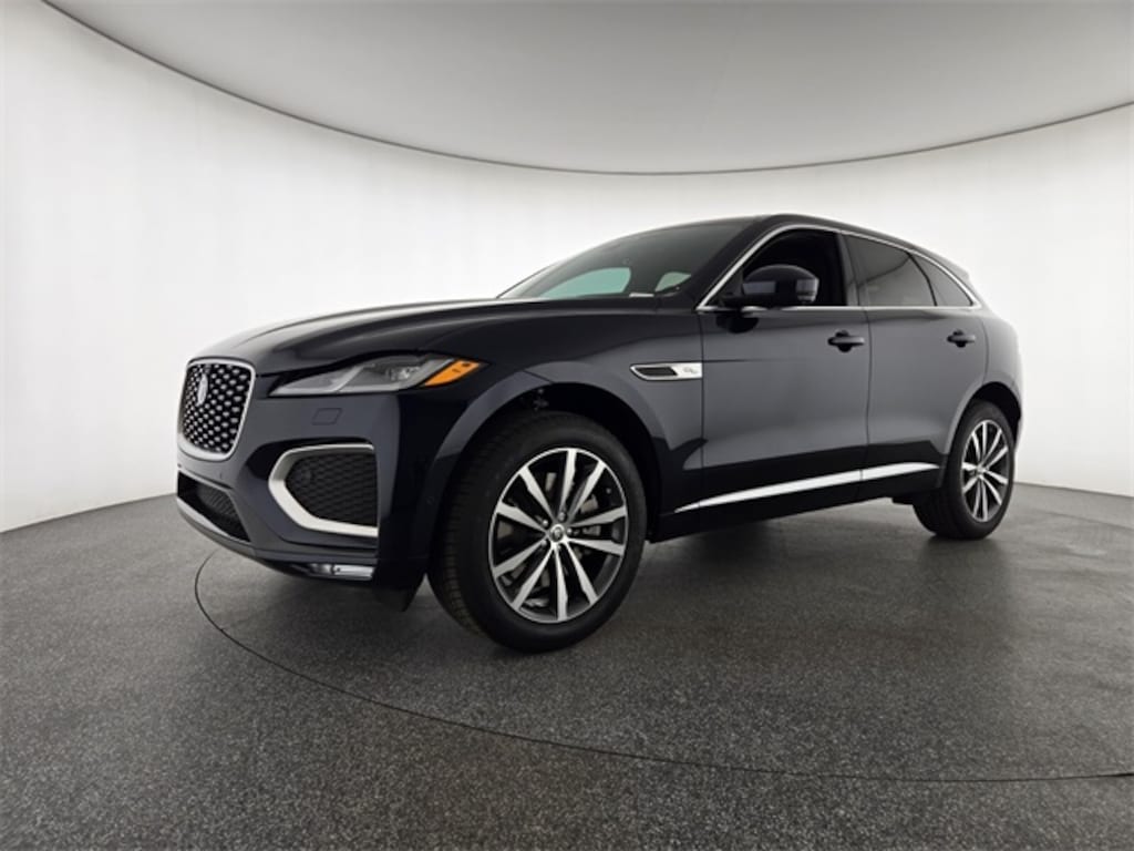 Portofino Blue Metallic 2026 Jaguar F-PACE P250 AWD 8-Speed Automatic 2.0L I4 Turbocharged 13 Speakers, 20" Wheels, 4-Wheel Disc Brakes, ABS brakes, Air Conditioning, Alloy wheels, AM/FM radio: SiriusXM, Apple CarPlay/Android Auto, Auto High-beam Headlights, Auto tilt-away steering wheel, Auto-dimming door mirrors, Auto-dimming Rear-View mirror, Automatic temperature control, Brake assist, Bright Exterior Pack, Bumpers: body-color, Compass, Delay-off headlights, Driver door bin, Driver vanity mirror, Dual front impact airbags, Dual front side impact airbags, Electronic Stability Control, Emergency communication system: Remote SOS Emergency Call, Exterior Parking Camera Rear, Four wheel independent suspension, Front anti-roll bar, Front Bucket Seats, Front Center Armrest, Front dual zone A/C, Front fog lights, Front reading lights, Fully automatic headlights, Garage door transmitter: HomeLink, Heads-Up Display, Heated door mirrors, Heated front seats, Heated Front Sport Seats, Heated steering wheel, Illuminated entry, Leather Shift Knob, Leather steering wheel, Low tire pressure warning, Memory seat, Navigation system: Pivi Pro (Connected Navigation), Occupant sensing airbag, Outside temperature display, Overhead airbag, Overhead console, Panic alarm, Passenger door bin, Passenger vanity mirror, Perforated DuoLeather Seat Trim, Power door mirrors, Power driver seat, Power Liftgate, Power moonroof, Power passenger seat, Power steering, Power windows, Premium Interior Protection Pack w/o Full Spare, Radio data system, Radio: Meridian 400W Sound System, Radio: Meridian 650W Surround Sound System, Rain sensing wipers, Rear anti-roll bar, Rear fog lights, Rear reading lights, Rear seat center armrest, Rear window defroster, Rear window wiper, Remote keyless entry, Satin Charcoal Ash Veneer, Security system, Speed control, Speed-sensing steering, Split folding rear seat, Spoiler, Sport steering wheel, Steering wheel memory, Steering wheel mounted audio controls, Tachometer, Telescoping steering wheel, Tilt steering wheel, Traction control, Trip computer, Turn signal indicator mirrors, Variably intermittent wipers, Wheel Protection Pack Chrome Locks, Wheels: 19" Diamond Turned (Style 5103), Wheels: 20" Diamond Turned (Style 5031).