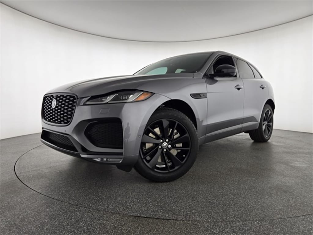 Eiger Gray Metallic 2026 Jaguar F-PACE P250 AWD 8-Speed Automatic 2.0L I4 Turbocharged 13 Speakers, 20" Wheels, 4-Wheel Disc Brakes, ABS brakes, Air Conditioning, Alloy wheels, AM/FM radio: SiriusXM, Apple CarPlay/Android Auto, Auto High-beam Headlights, Auto tilt-away steering wheel, Auto-dimming door mirrors, Auto-dimming Rear-View mirror, Automatic temperature control, Brake assist, Bumpers: body-color, Compass, Delay-off headlights, Driver door bin, Driver vanity mirror, Dual front impact airbags, Dual front side impact airbags, Electronic Stability Control, Emergency communication system: Remote SOS Emergency Call, Exterior Parking Camera Rear, Four wheel independent suspension, Front anti-roll bar, Front Bucket Seats, Front Center Armrest, Front dual zone A/C, Front fog lights, Front reading lights, Fully automatic headlights, Garage door transmitter: HomeLink, Heads-Up Display, Heated door mirrors, Heated front seats, Heated Front Sport Seats, Heated steering wheel, Illuminated entry, Leather Shift Knob, Leather steering wheel, Low tire pressure warning, Memory seat, Navigation system: Pivi Pro (Connected Navigation), Occupant sensing airbag, Outside temperature display, Overhead airbag, Overhead console, Panic alarm, Passenger door bin, Passenger vanity mirror, Perforated DuoLeather Seat Trim, Power door mirrors, Power driver seat, Power Liftgate, Power moonroof, Power passenger seat, Power steering, Power windows, Premium Interior Protection Pack w/o Full Spare, Radio data system, Radio: Meridian 400W Sound System, Radio: Meridian 650W Surround Sound System, Rain sensing wipers, Rear anti-roll bar, Rear fog lights, Rear reading lights, Rear seat center armrest, Rear window defroster, Rear window wiper, Remote keyless entry, Satin Charcoal Ash Veneer, Security system, Speed control, Speed-sensing steering, Split folding rear seat, Spoiler, Sport steering wheel, Steering wheel memory, Steering wheel mounted audio controls, Tachometer, Telescoping steering wheel, Tilt steering wheel, Traction control, Trip computer, Turn signal indicator mirrors, Variably intermittent wipers, Wheel Protection Pack Chrome Locks, Wheels: 19" Diamond Turned (Style 5103), Wheels: 20" Gloss Black (Style 1067).