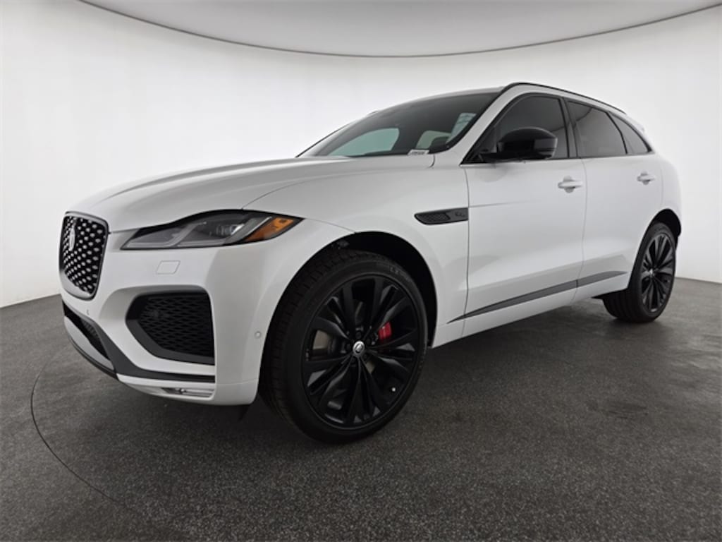 Ostuni Pearl White Premium Metallic 2026 Jaguar F-PACE P400 R-Dynamic S AWD 8-Speed Automatic 3.0L I6 13 Speakers, 4-Wheel Disc Brakes, ABS brakes, Adaptive suspension, Air Conditioning, Alloy wheels, AM/FM radio: SiriusXM, Apple CarPlay/Android Auto, Auto High-beam Headlights, Auto tilt-away steering wheel, Auto-dimming door mirrors, Auto-dimming Rear-View mirror, Automatic temperature control, Brake assist, Bumpers: body-color, Compass, Delay-off headlights, Driver door bin, Driver vanity mirror, Dual front impact airbags, Dual front side impact airbags, Electronic Stability Control, Emergency communication system: Remote SOS Emergency Call, Emergency Pack, Exterior Parking Camera Rear, Four wheel independent suspension, Front anti-roll bar, Front Bucket Seats, Front Center Armrest, Front dual zone A/C, Front fog lights, Front reading lights, Fully automatic headlights, Garage door transmitter: HomeLink, Gloss Black Roof Rails, Heads-Up Display, Heated door mirrors, Heated front seats, Heated Front Sport Seats, Heated steering wheel, Illuminated entry, Interior Protection Pack w/o Full Spare, Leather Shift Knob, Leather steering wheel, Low tire pressure warning, Memory seat, Navigation system: Pivi Pro (Connected Navigation), Occupant sensing airbag, Outside temperature display, Overhead airbag, Overhead console, Panic alarm, Passenger door bin, Passenger vanity mirror, Perforated DuoLeather Seat Trim, Power door mirrors, Power driver seat, Power Liftgate, Power moonroof, Power passenger seat, Power steering, Power windows, Radio data system, Radio: Meridian 400W Sound System, Radio: Meridian 650W Surround Sound System, Rain sensing wipers, Rear anti-roll bar, Rear fog lights, Rear reading lights, Rear seat center armrest, Rear window defroster, Rear window wiper, Red Brake Calipers, Remote keyless entry, Satin Charcoal Ash Veneer, Security system, Speed control, Speed-sensing steering, Split folding rear seat, Spoiler, Sport steering wheel, Steering wheel memory, Steering wheel mounted audio controls, Tachometer, Telescoping steering wheel, Tilt steering wheel, Traction control, Trip computer, Turn signal indicator mirrors, Variably intermittent wipers, Wheel Protection Pack Black Locks & Lugs, Wheels: 19" Diamond Turned (Style 5103), Wheels: 22" Forged Gloss Black (Style 1020).
