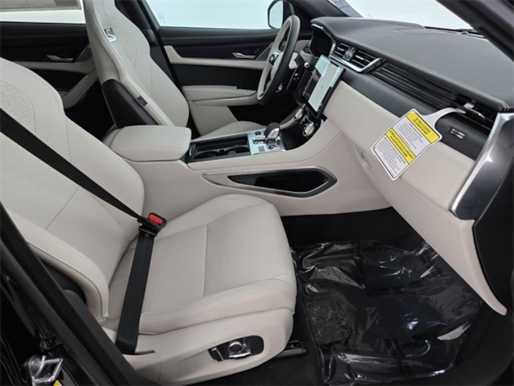 Santorini Black Metallic 2026 Jaguar F-PACE P250 AWD 8-Speed Automatic 2.0L I4 Turbocharged 13 Speakers, 4-Wheel Disc Brakes, ABS brakes, Adaptive Dynamics, Air Conditioning, Alloy wheels, AM/FM radio: SiriusXM, Apple CarPlay/Android Auto, Auto High-beam Headlights, Auto tilt-away steering wheel, Auto-dimming door mirrors, Auto-dimming Rear-View mirror, Automatic temperature control, Brake assist, Bumpers: body-color, Compass, Configurable Dynamics, Delay-off headlights, Driver door bin, Driver vanity mirror, Dual front impact airbags, Dual front side impact airbags, Electronic Stability Control, Emergency communication system: Remote SOS Emergency Call, Exterior Parking Camera Rear, Four wheel independent suspension, Front anti-roll bar, Front Bucket Seats, Front Center Armrest, Front dual zone A/C, Front fog lights, Front reading lights, Fully automatic headlights, Garage door transmitter: HomeLink, Heads-Up Display, Heated & Cooled Front Performance Seats, Heated door mirrors, Heated front seats, Heated Front Sport Seats, Heated steering wheel, Illuminated entry, Leather Shift Knob, Leather steering wheel, Low tire pressure warning, Memory seat, Navigation system: Pivi Pro (Connected Navigation), Occupant sensing airbag, Outside temperature display, Overhead airbag, Overhead console, Panic alarm, Passenger door bin, Passenger vanity mirror, Perforated DuoLeather Seat Trim, Power door mirrors, Power driver seat, Power Liftgate, Power moonroof, Power passenger seat, Power steering, Power windows, Radio data system, Radio: Meridian 400W Sound System, Rain sensing wipers, Rear anti-roll bar, Rear fog lights, Rear reading lights, Rear seat center armrest, Rear window defroster, Rear window wiper, Remote keyless entry, Satin Charcoal Ash Veneer, Security system, Speed control, Speed-sensing steering, Split folding rear seat, Spoiler, Sport steering wheel, Steering wheel memory, Steering wheel mounted audio controls, Tachometer, Telescoping steering wheel, Tilt steering wheel, Traction control, Trip computer, Turn signal indicator mirrors, Variably intermittent wipers, Wheel Protection Pack Chrome Locks, Wheels: 19" Diamond Turned (Style 5103), Wheels: 22" Forged Gloss Black (Style 1020).