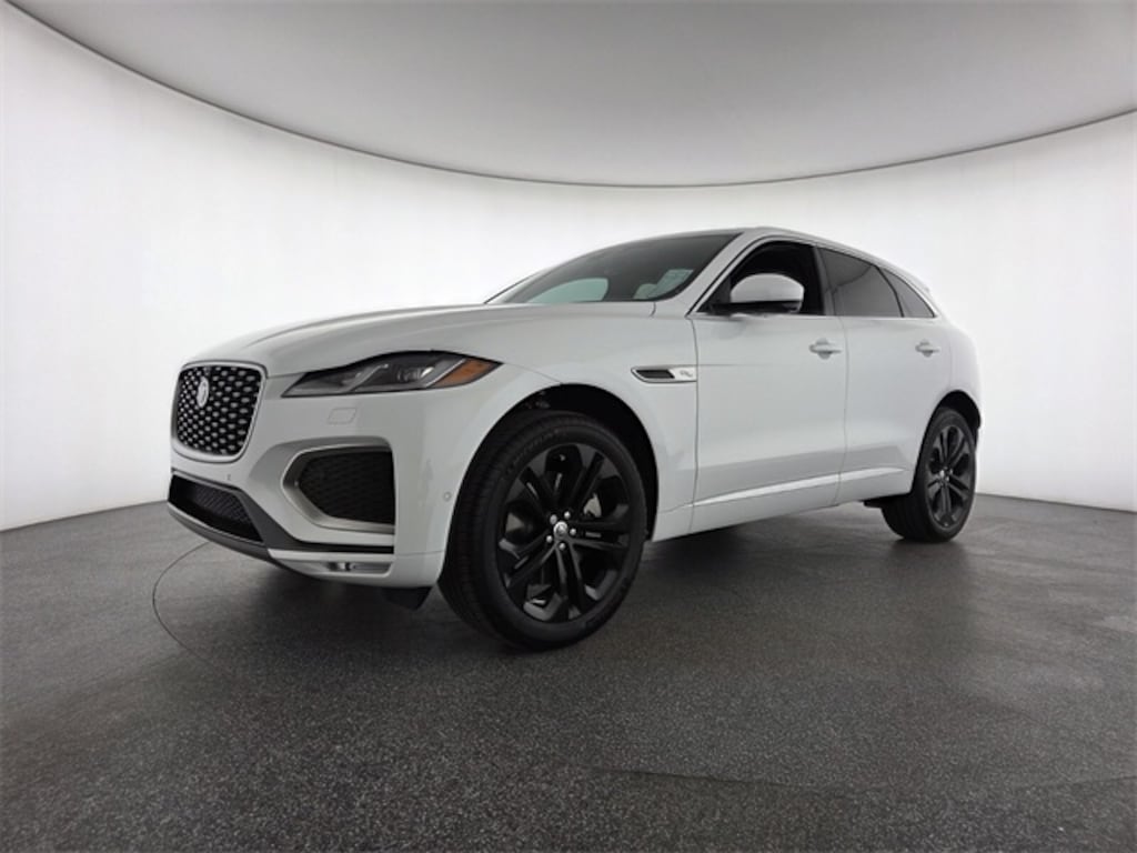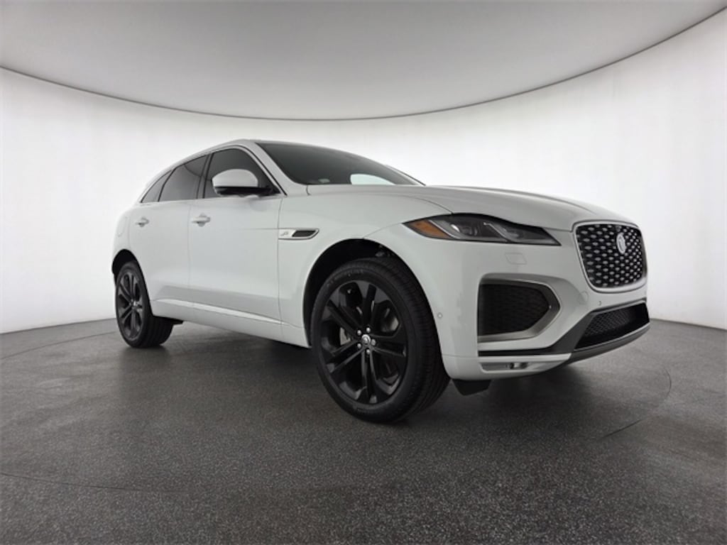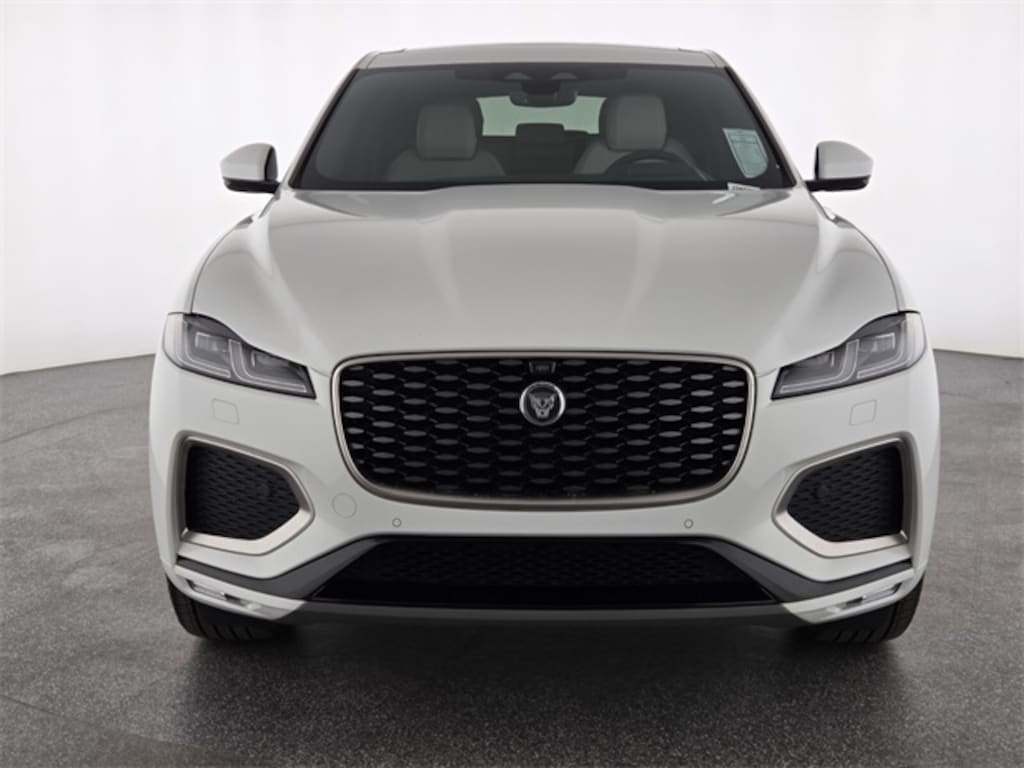 Fuji White 2026 Jaguar F-PACE P250 AWD 8-Speed Automatic 2.0L I4 Turbocharged 13 Speakers, 20" Wheels, 4-Wheel Disc Brakes, ABS brakes, Air Conditioning, Alloy wheels, AM/FM radio: SiriusXM, Apple CarPlay/Android Auto, Auto High-beam Headlights, Auto tilt-away steering wheel, Auto-dimming door mirrors, Auto-dimming Rear-View mirror, Automatic temperature control, Brake assist, Bright Exterior Pack, Bumpers: body-color, Compass, Delay-off headlights, Driver door bin, Driver vanity mirror, Dual front impact airbags, Dual front side impact airbags, Electronic Stability Control, Emergency communication system: Remote SOS Emergency Call, Emergency Pack, Exterior Parking Camera Rear, Four wheel independent suspension, Front anti-roll bar, Front Bucket Seats, Front Center Armrest, Front dual zone A/C, Front fog lights, Front reading lights, Fully automatic headlights, Garage door transmitter: HomeLink, Heads-Up Display, Heated door mirrors, Heated front seats, Heated Front Sport Seats, Heated steering wheel, Illuminated entry, Interior Protection Pack w/o Full Spare, Leather Shift Knob, Leather steering wheel, Low tire pressure warning, Memory seat, Navigation system: Pivi Pro (Connected Navigation), Occupant sensing airbag, Outside temperature display, Overhead airbag, Overhead console, Panic alarm, Passenger door bin, Passenger vanity mirror, Perforated DuoLeather Seat Trim, Power door mirrors, Power driver seat, Power Liftgate, Power moonroof, Power passenger seat, Power steering, Power windows, Radio data system, Radio: Meridian 400W Sound System, Rain sensing wipers, Rear anti-roll bar, Rear fog lights, Rear reading lights, Rear seat center armrest, Rear window defroster, Rear window wiper, Remote keyless entry, Satin Charcoal Ash Veneer, Security system, Speed control, Speed-sensing steering, Split folding rear seat, Spoiler, Sport steering wheel, Steering wheel memory, Steering wheel mounted audio controls, Tachometer, Telescoping steering wheel, Tilt steering wheel, Traction control, Trip computer, Turn signal indicator mirrors, Variably intermittent wipers, Wheel Protection Pack Chrome Locks, Wheels: 19" Diamond Turned (Style 5103), Wheels: 20" Diamond Turned (Style 5031).